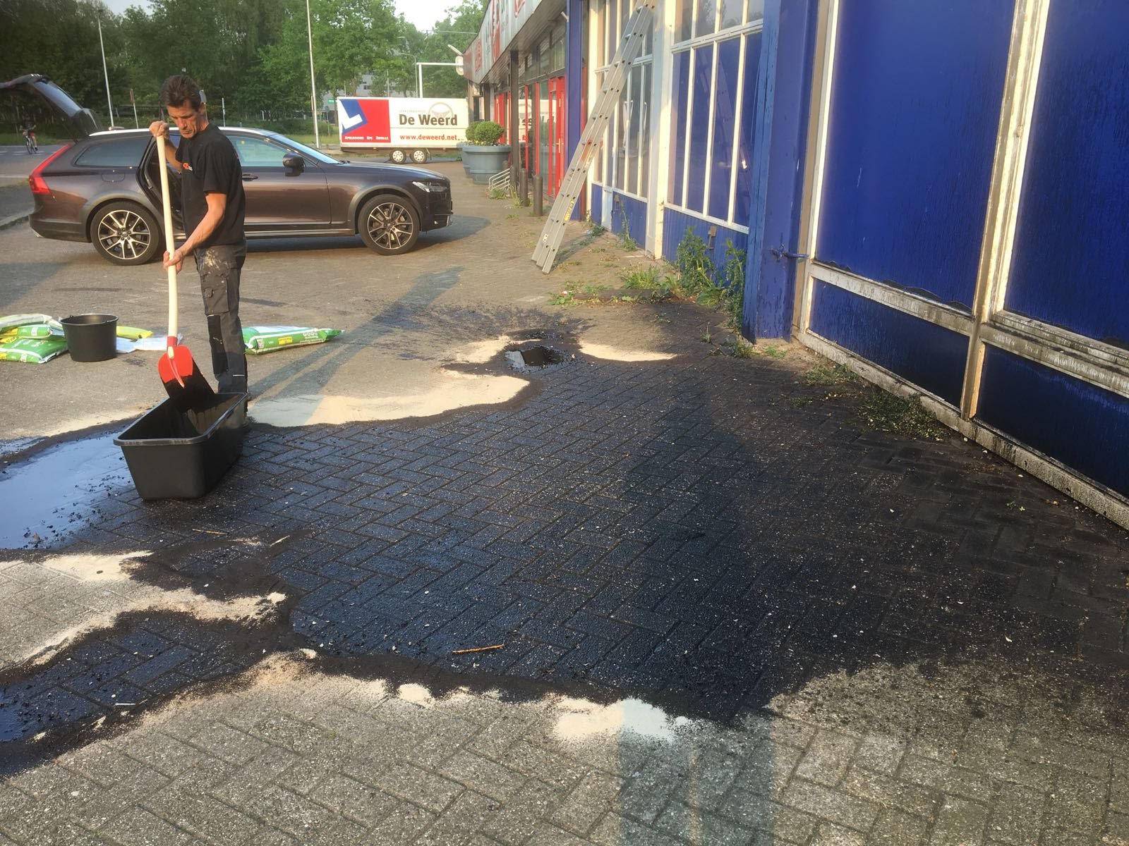 De ontluchtingspijp van de olietanks waren overgelopen. Daardoor is de afgewerkte olie op de bestrating, de gevel en het dak terecht gekomen. Best Building Service en Cas Calamiteiten hebben de olie opgeruimd en de gevel en het dak gereinigd. Ook de bestrating die bedekt was onder een laag olie is uitvoerig schoongemaakt. Met het warme weer is het noodzakelijk om snel te handelen, want door de hitte trekt de olie gemakkelijker in het dak en straatoppervlak.