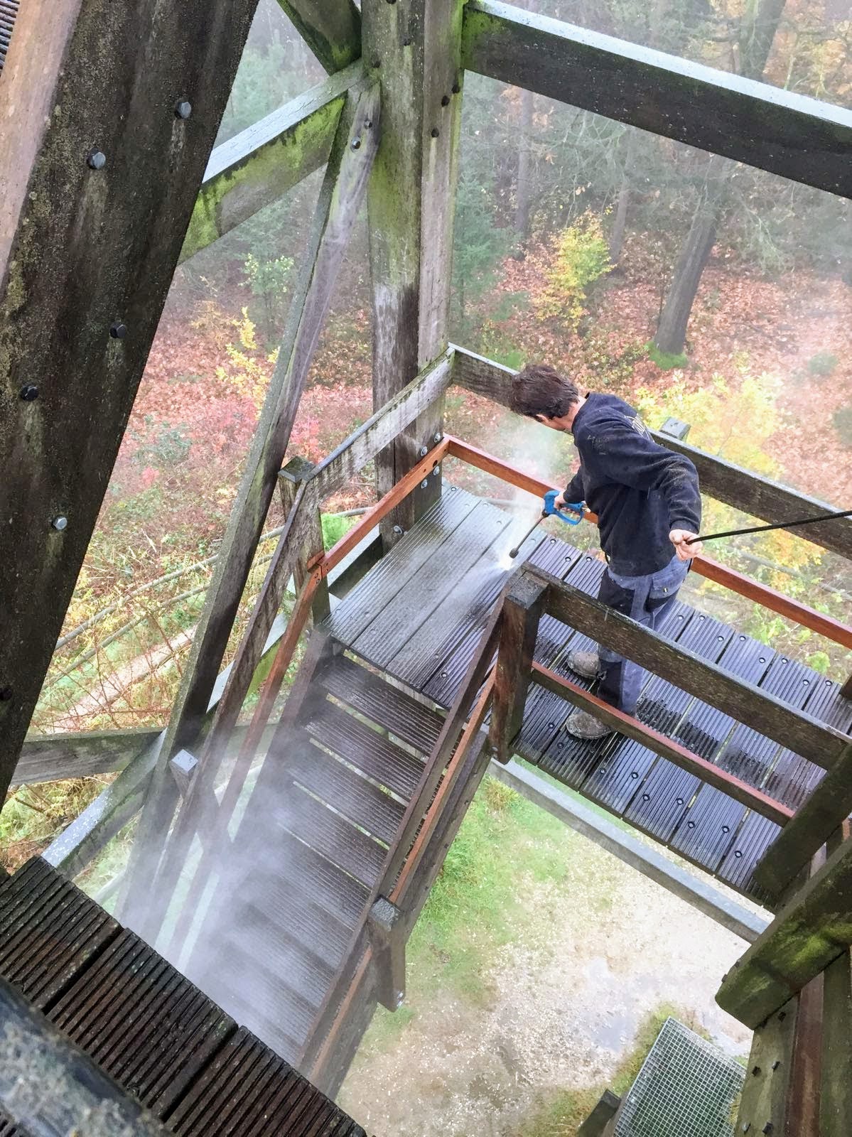 In de natuur is de kans groot dat er groene aanslag op hout komt te zitten. Dit was ook het geval bij de Emmapiramide in Rozendaal. Wij zijn daarom door de Gemeente Rheden gevraagd om deze toren schoon te maken door middel van specialistische reiniging.